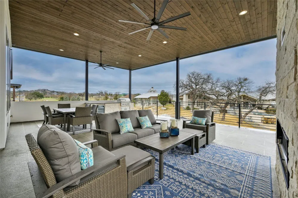 Features: Retractable Glass Wall in Living and Dining Areas, Guest Casita with Private Courtyard Entrance, Interior and exterior Stairway to Boat Dock. Outdoor: Outdoor Living/Dining Area with Fireplace, Summer Kitchen, Front Courtyard, 2 Slip Boat Dock slips. This stunning 1-story home is located in a gated community! LOW TAXES!!! A beautifully designed Transitional home found in a quaint cove on Lake LBJ is the perfect place to call home. If owning a lakefront property is your dream, then look no further than this luxury home located in a private, gated 9 lot community. With 4 bedrooms, 2 boat slips, a 2 car garage plus a golf cart bay, and 955 square feet of outdoor living, this Lake LBJ jewel fits any family and lifestyle! LOW TAXES!